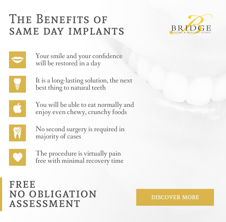 A year ago Moss and Sonia took me through the implant of a top front tooth. My regular dentist had tried very hard over a two year period to save what was left of my old tooth but we finally had to admit defeat. My regular dentist recommended Bridge Clinic and an implant. I was more nervous than I can say.I was very nervous about the procedure. Moss and Sonia were so kind and patient that after my 3 appointments I left wondering why I had allowed myself to get into such a silly state. Yesterday I returned to the clinic for my one year on check. The tooth is perfect, my gum is healthy and my smile is as good as it's ever been.