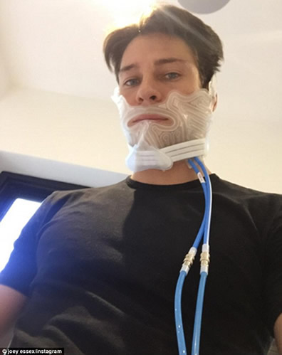 After a recent operation to remove all four of his wisdom teeth, TV star Joey Essex posted a series of pictures on Instagram that showed him wearing the plastic mask, which helps relieve dental pain and swelling by cooling the affected tissues.
